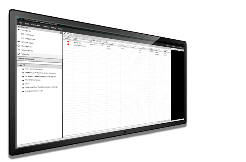 The Station manager empowers you to remotely control all of the Signage Players. You can reboot, play, stop, update software, get statistics and more. All this from within the comfort of the SignageStudio station manager.
